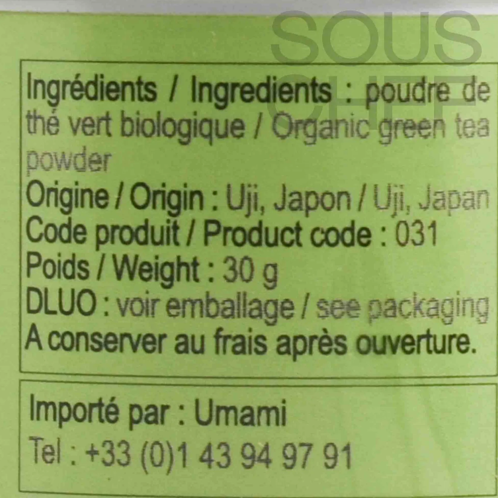 Product formulations and details may change. For the latest ingredients and allergen information always check product packaging prior to consumption. Ingredients: Organic green tea powder 100%