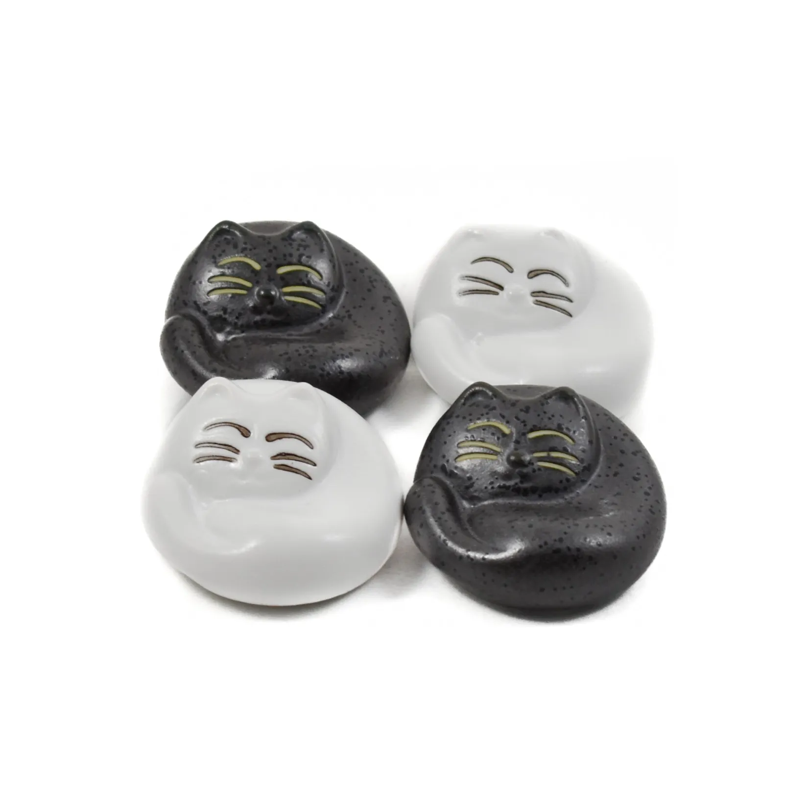 The cats chopstick rest set adds instant cuteness to your table. Each set includes 4 chopstick rests shaped like curled up, sleeping cats.