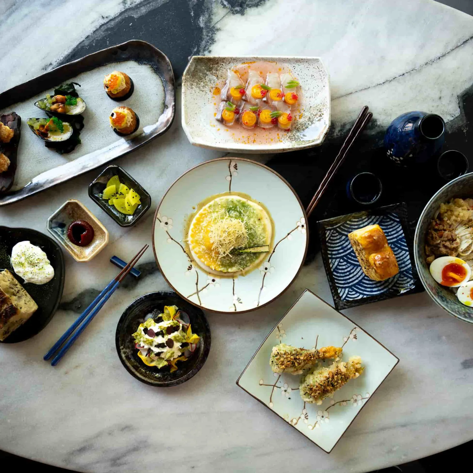 Chouseki blue gold bowls and plates are also available.