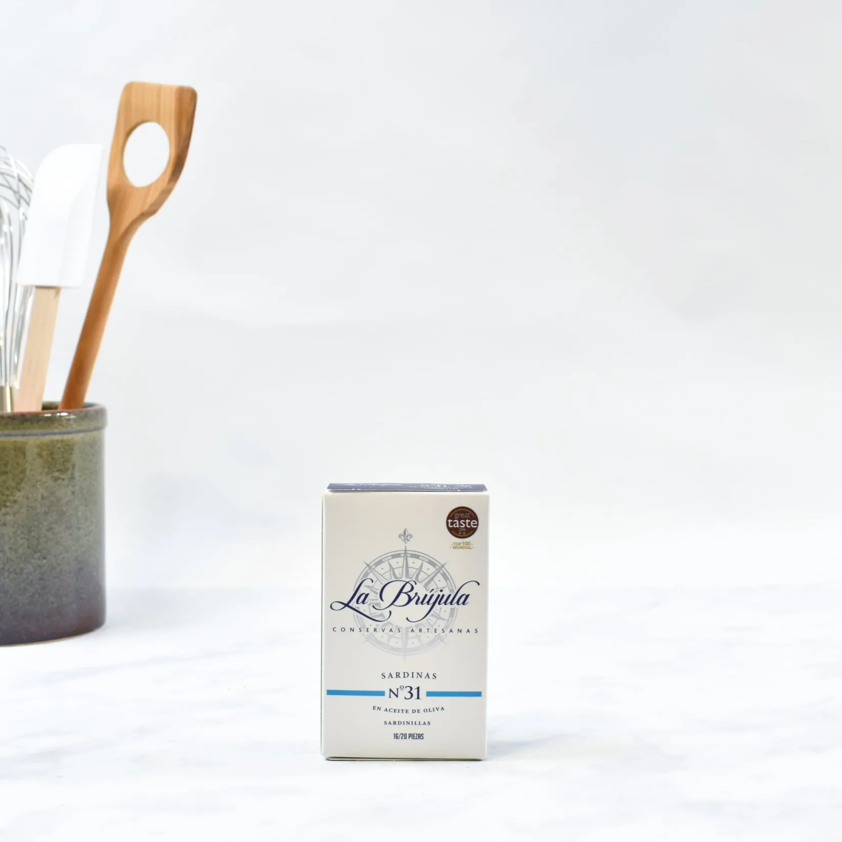 La Brújula sardinillas – small sardines – are your shortcut to easy meals that taste great. The plump, mild sardines are hand prepared, gently steamed, then canned by hand with olive oil.