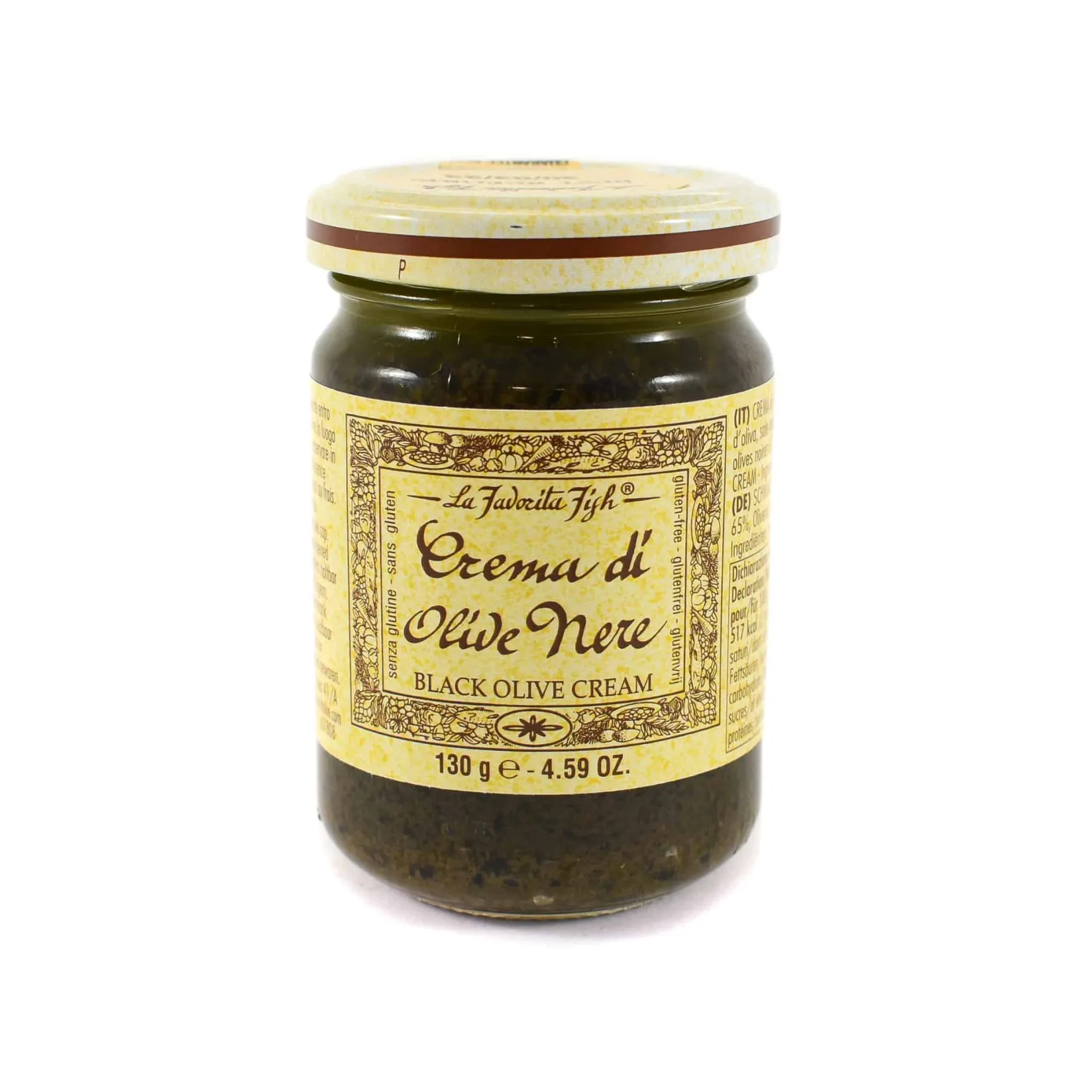 La Favorita black olive cream is a punchy ready-made-sauce for stirring through cooked pasta, spreading over crunchy bread or using as a dip for crostini. Made with only three ingredients – black olives, olive oil, and sea salt – this cream is intense in flavour.