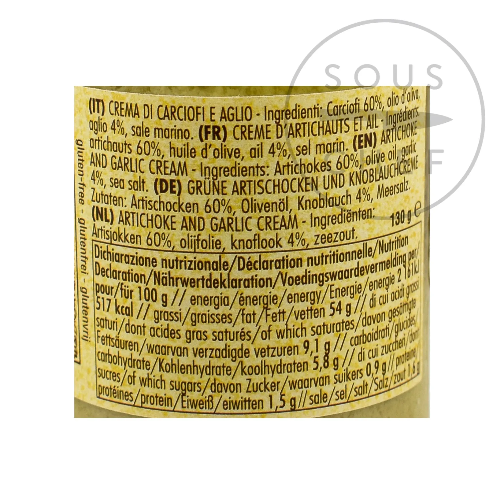Product formulations and details may change. For the latest ingredients and allergen information always check product packaging prior to consumption. Ingredients: Artichoke 60%, olive oil, garlic 4%, sea salt