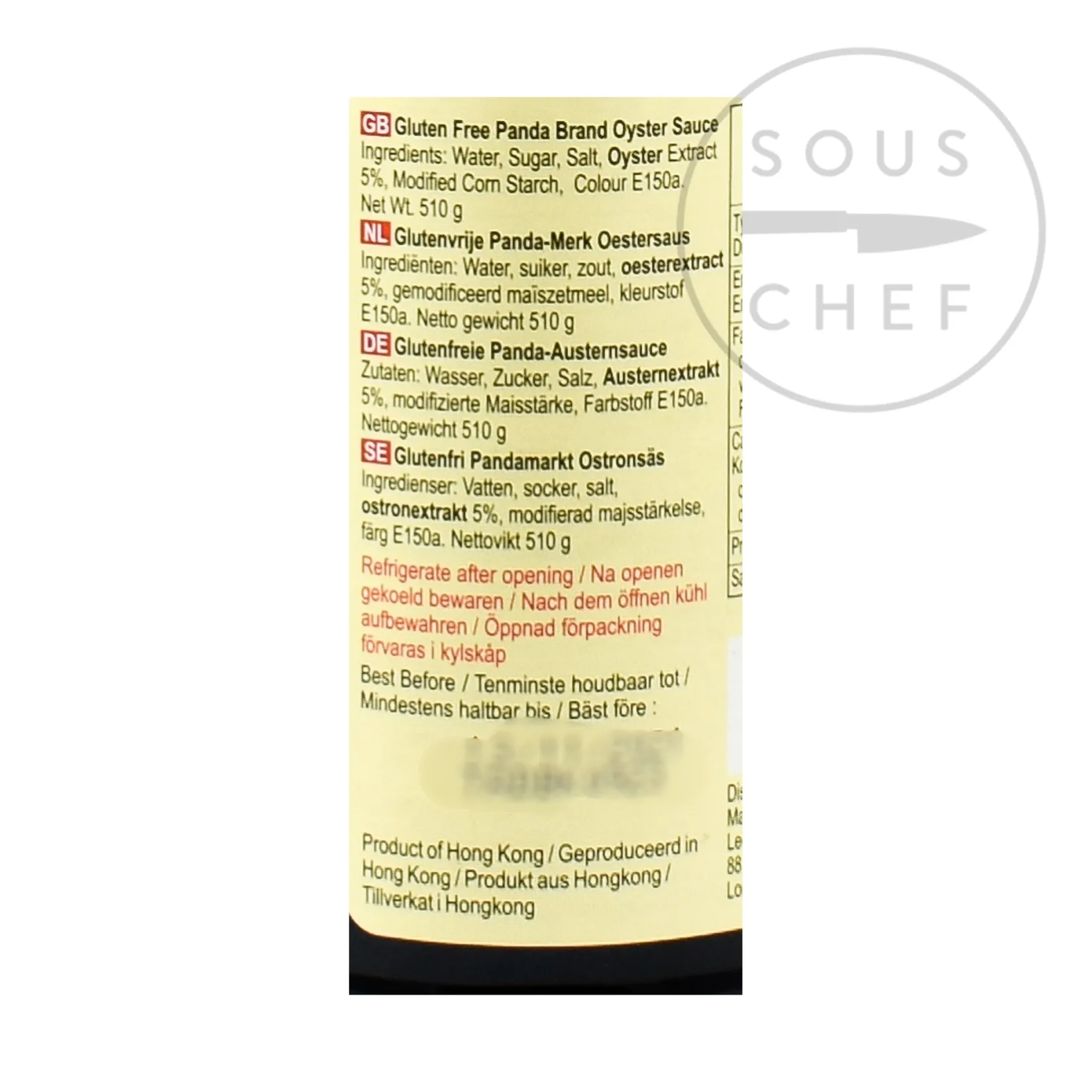 Product formulations and details may change. For the latest ingredients and allergen information always check product packaging prior to consumption. Ingredients: Water, sugar, salt, oyster extract 5%, modified corn starch, colour e150a. Allergens listed in bold.