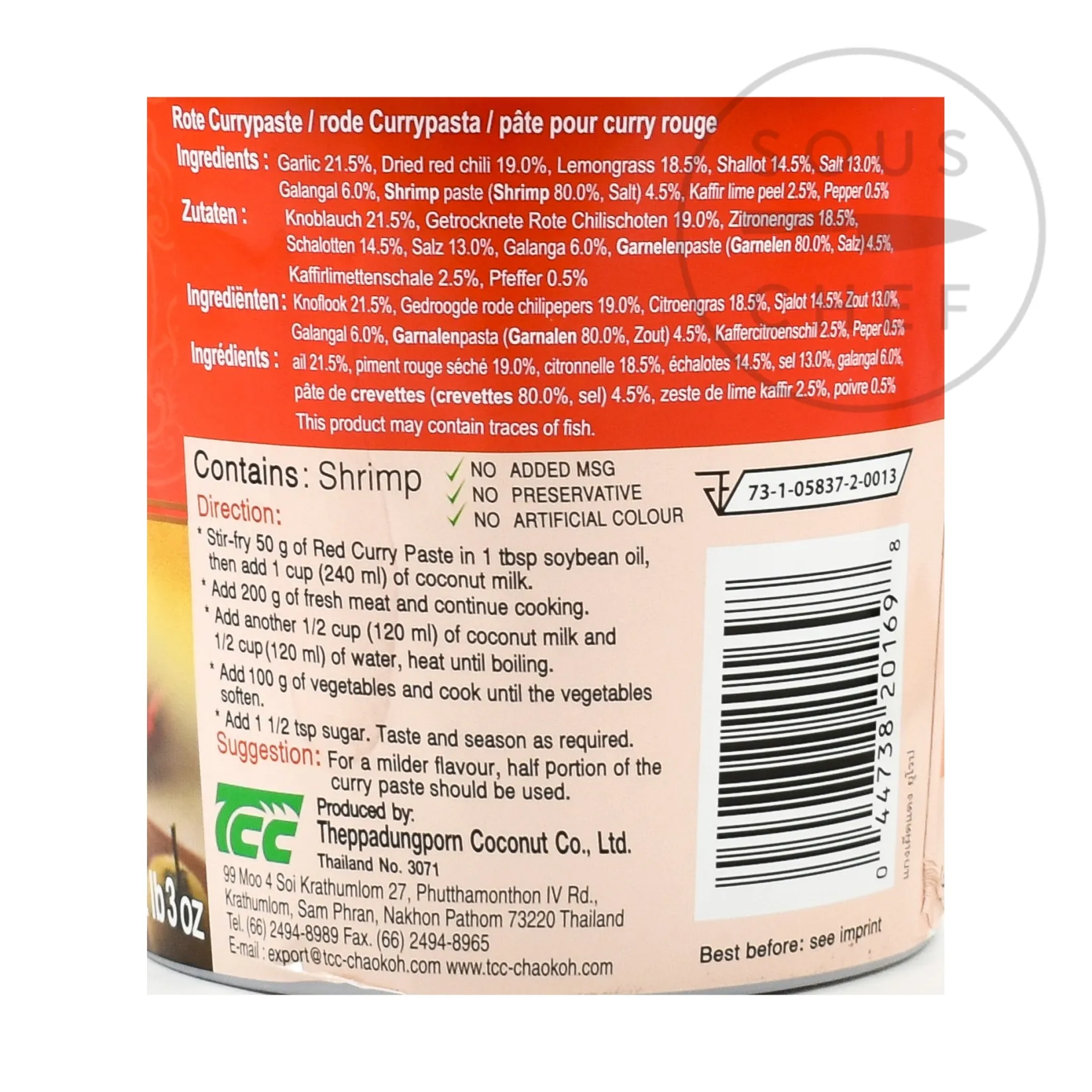 Product formulations and details may change. For the latest ingredients and allergen information always check product packaging prior to consumption. Ingredients: Garlic 21.5%, Dried red chilli 19%, Lemongrass 18.5%, Shallot 14.5%, Salt 13%, Galangal 6%, Shrimp paste (Shrimp 80%, Salt) 4.5%, Kaffir lime peel 2.5%, Pepper 0.5%