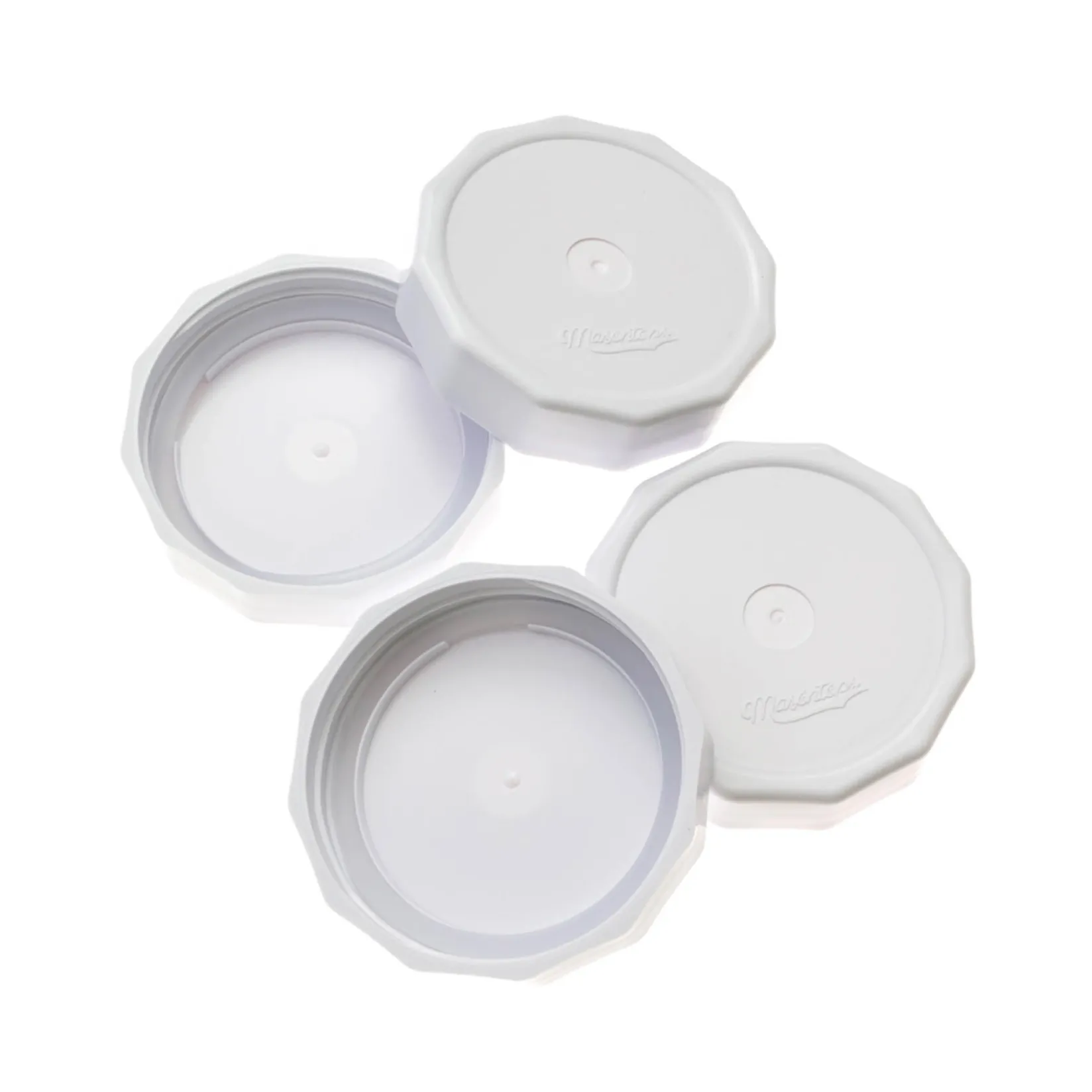 Masontop wide mouth tough tops are multi-purpose lids for storing food and liquids. Made from durable, food-safe plastic, the white lids are ideal for storing sauerkraut, pickles and kimchi. The tough tops create a leak-proof and airtight seal, so you can carry your fermented food on the go.