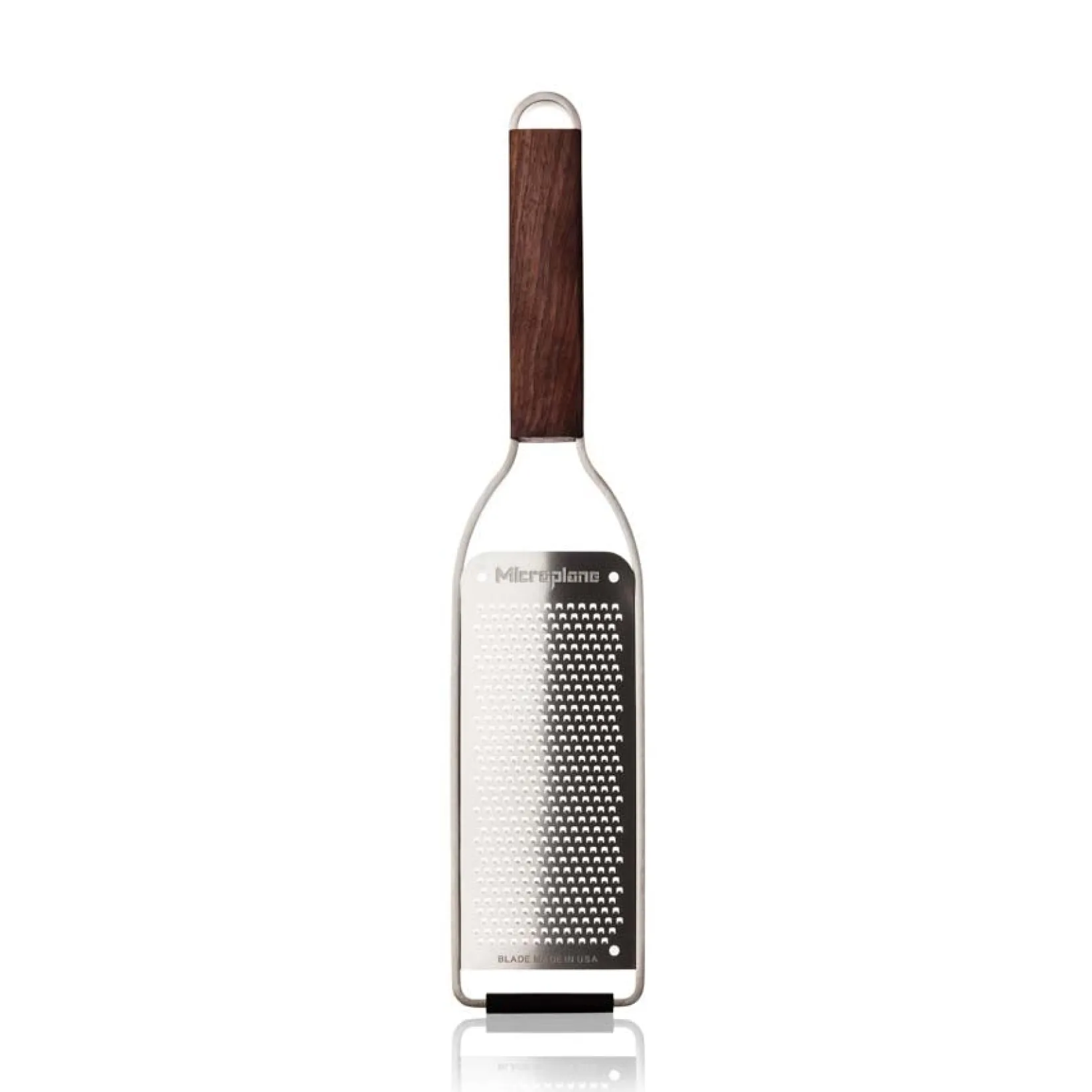 The walnut Microplane fine grater is a must-have tool for parmesan lovers. Conventional graters can struggle when faced with the hard cheese, but the Microplane fine grater makes adding a fresh grating of parmesan to your bowl of pasta as easy as eating it!