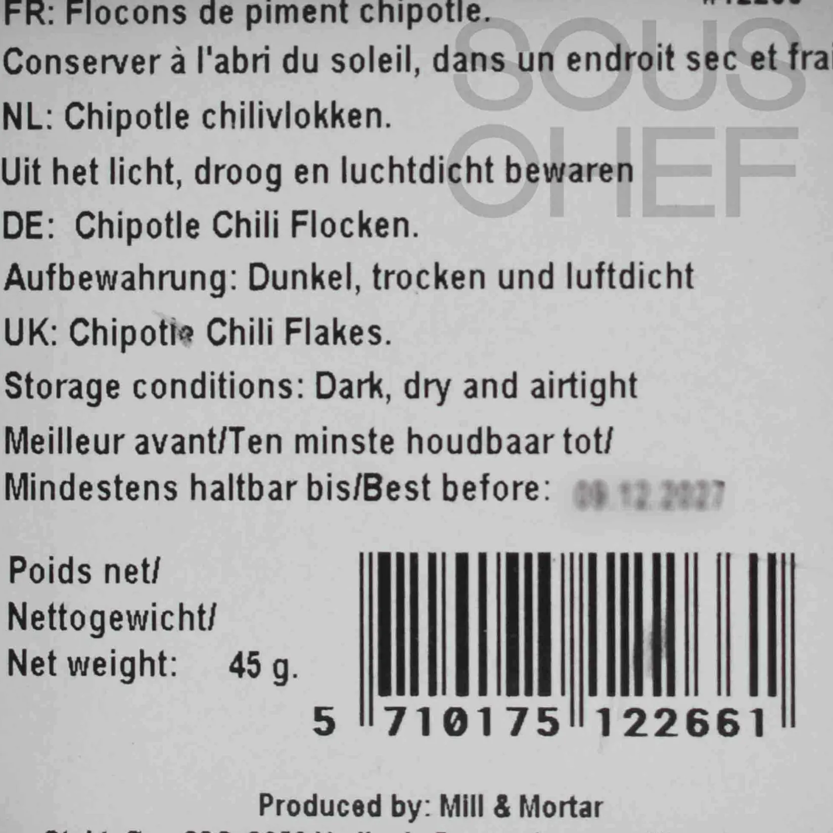 Product formulations and details may change. For the latest ingredients and allergen information always check product packaging prior to consumption. Ingredients: Chipotle chili flakes