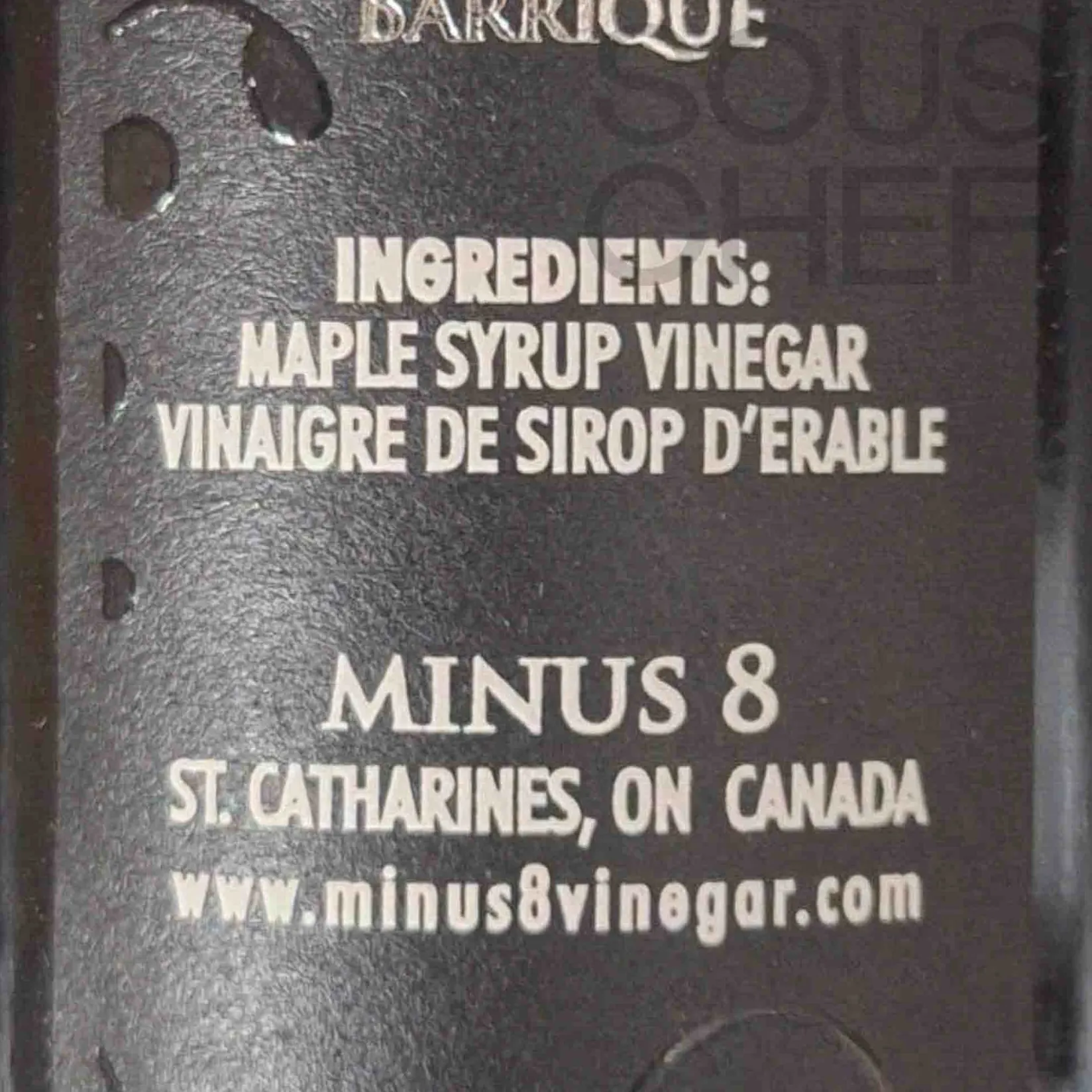 Minus 8 is a family-owned vineyard in Niagara, Canada. The name refers to the temperature at which the grapes are harvested. They are pressed while still frozen, resulting in a sweet juice known as ice wine. This is then fermented to produce vinegar.