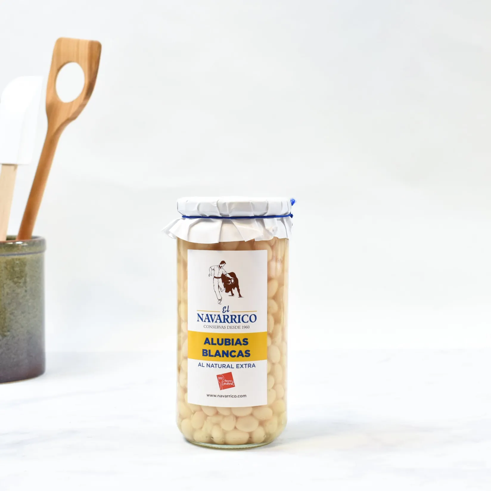 Navarrico alubias haricot beans will give you healthy Spanish meals in minutes. These quality beans are ready-to-eat straight from the jar, so all you need to do is drain them.