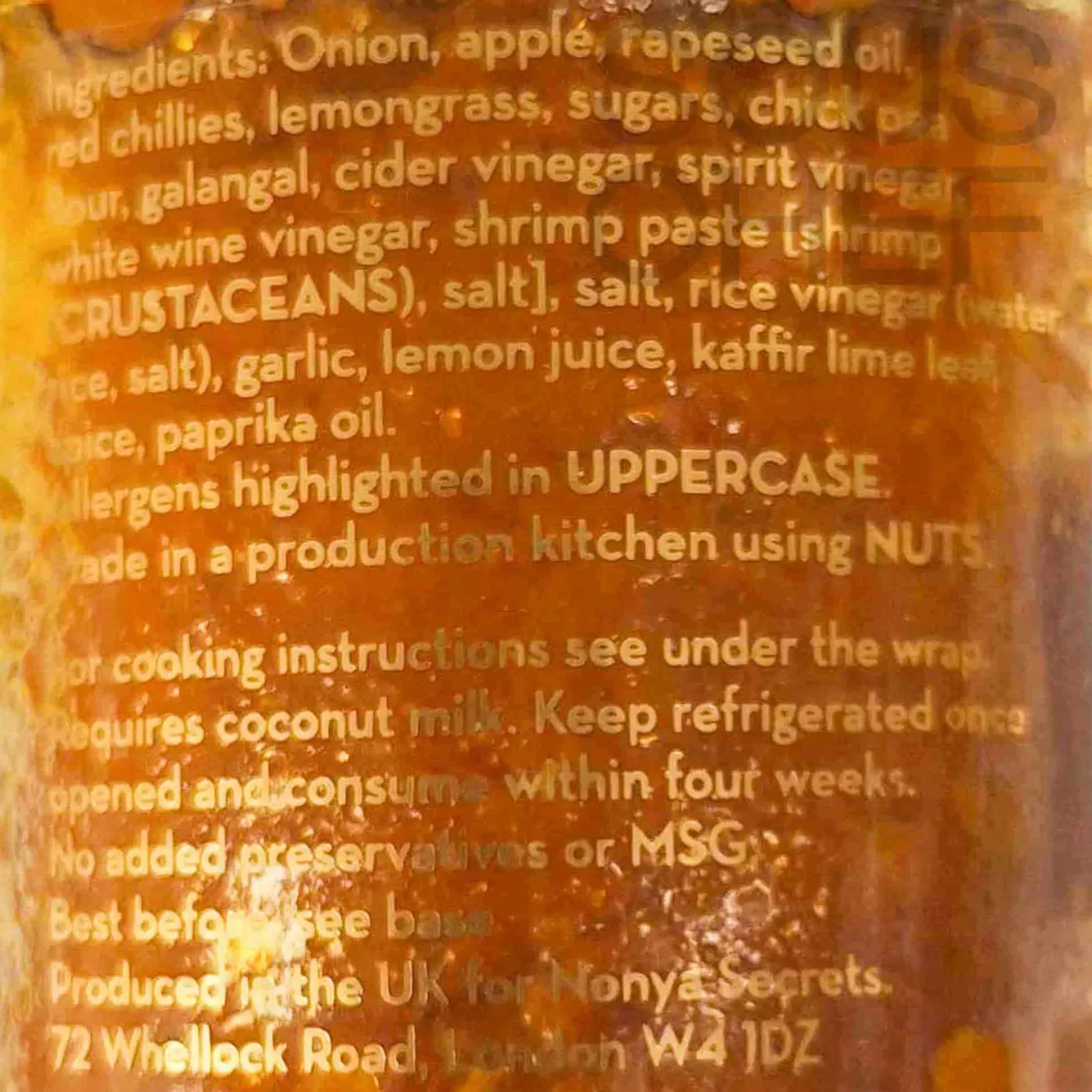 Product formulations and details may change. For the latest ingredients and allergen information always check product packaging prior to consumption. Ingredients: Onions, apple, rapeseed oil, red chillies, lemongrass, sugars, chickpea flour, galangal, cider vinegar, spirit vinegar, white wine vinegar, shrimp paste (crustaceans), salt), salt, rice vinegar (water, rice, salt), garlic, lemon juice, kaffir lime leaf, spice, paprika oil.