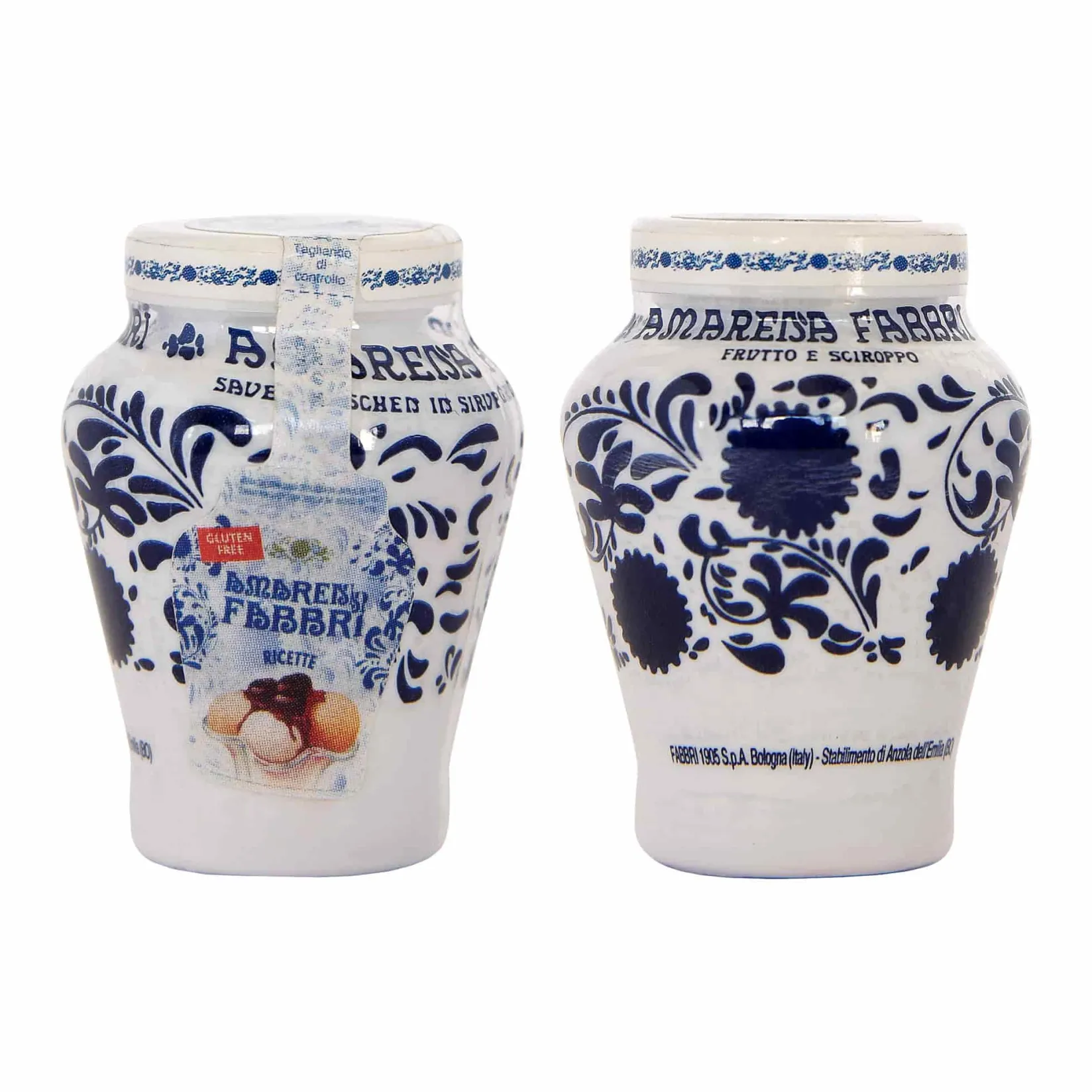 Amarena cherries are small, black sour cherries that grow wild in Bologna and Modena. They are gently cooked and preserved in sugar syrup, then used as a dessert topping. Popular across Italy and beyond, the cherries are used in cakes, panna cotta, panettone and more.