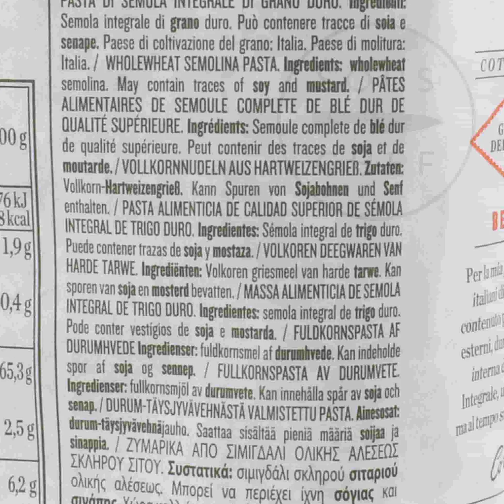 Product formulations and details may change. For the latest ingredients and allergen information always check product packaging prior to consumption. Ingredients: whole wheat semolina. Allergens are listed in bold. May contain traces of soy.