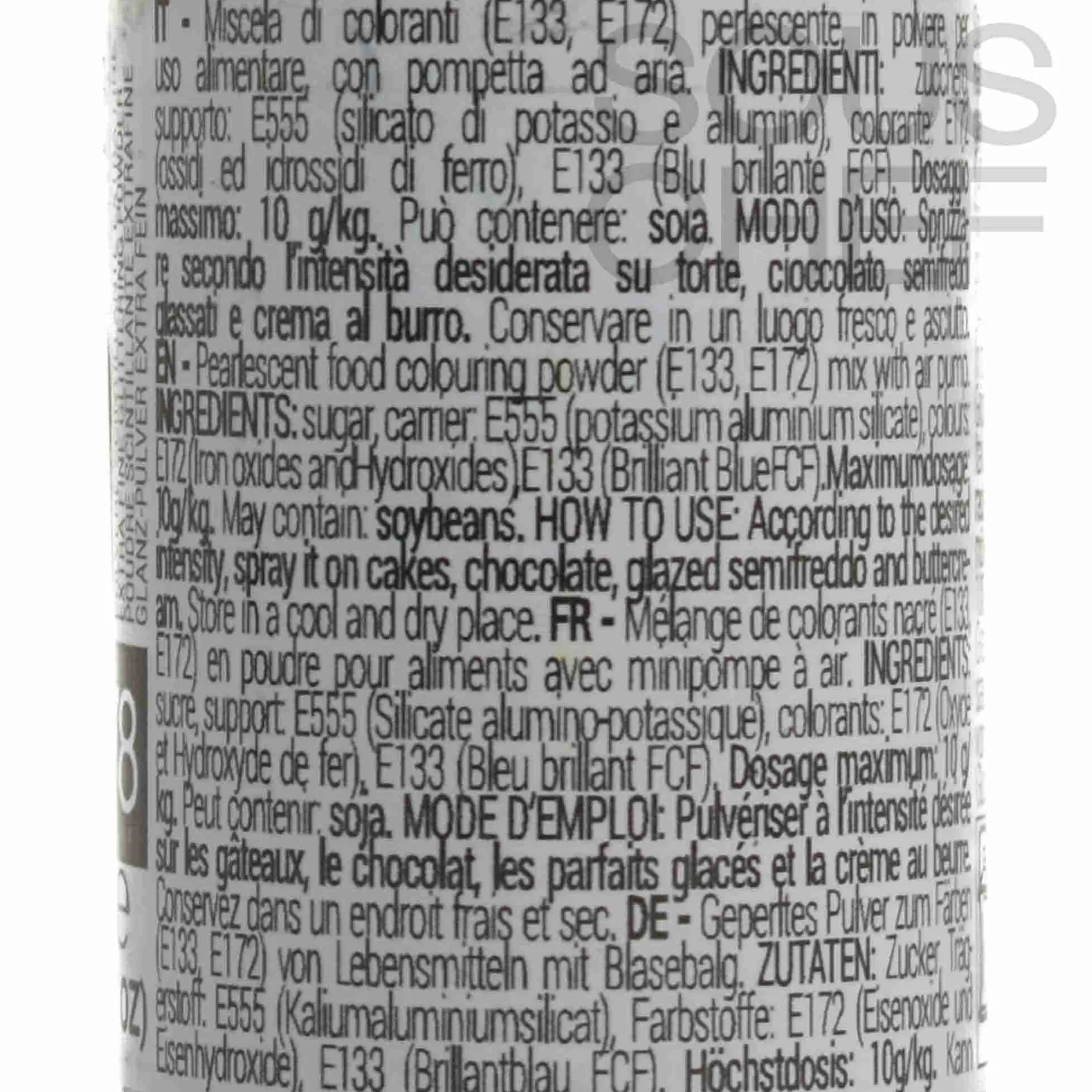 This glitter spray is suitable for domestic and professional kitchens. Use it to add a pearlescent finish to cupcakes, semifreddo and royal icing.