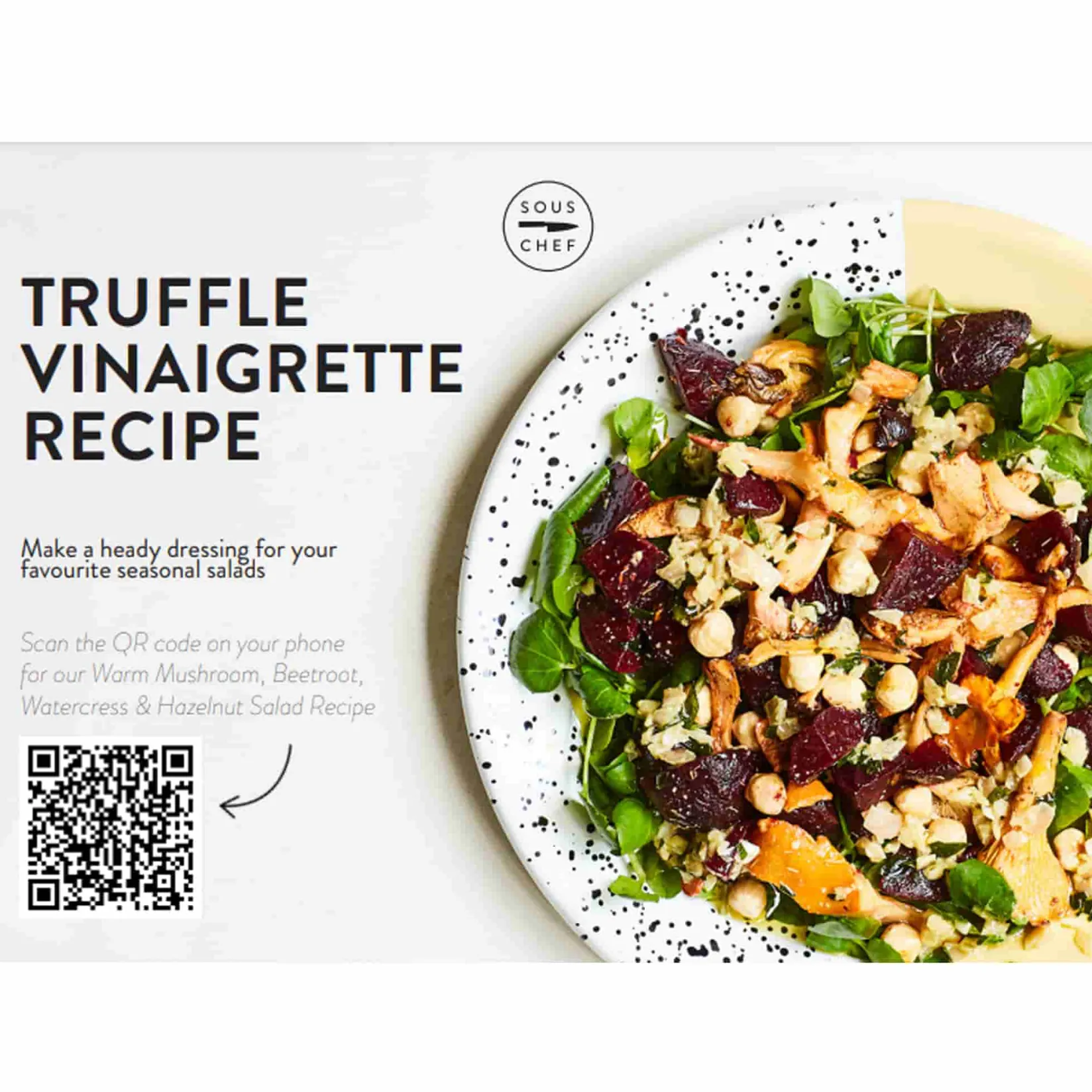Black truffle oil has a wonderfully intense aroma and rich earthy flavours. The truffle oil should be used as a finishing oil – to drizzle over dishes just before serving. The fine truffled Italian extra virgin olive oil is delicious drizzled over beef fillets, mushroom risottos, roasted celeriac and jerusalem artichokes, or even scrambled eggs for a luxurious breakfast dish.