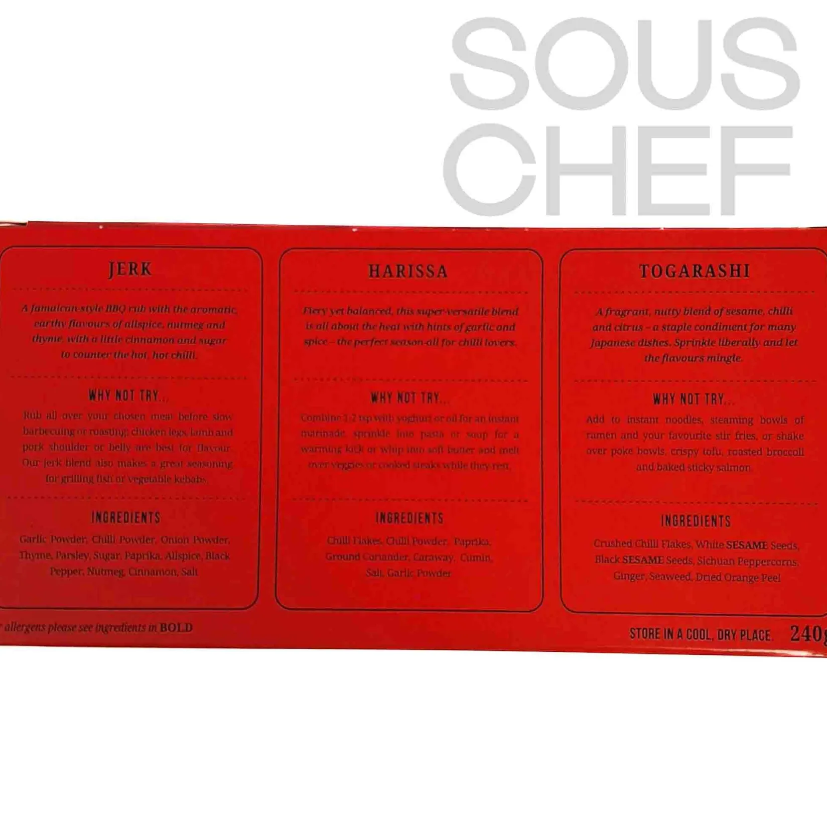 Savour fiery flavours with the Spice Kitchen chilli blend trio. It features three of their most popular spice blends, including two Great Taste Award winners. Use them to create spicy, savoury dishes from Jamaica, Tunisia and Japan.