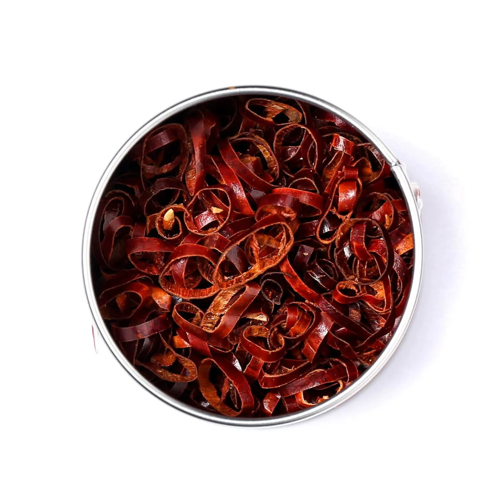 Terre Exotique’s ring of fire chilli pepper is a playful garnish of perfectly uniform chilli slices. The dark red rings look stunning as a finishing touch on all sorts of recipes from around the world – creamy Thai coconut curries, Mexican mole stews, steamed parcels of fish ‘en papillote, or a colourful bowl of Vietnamese pho noodles.