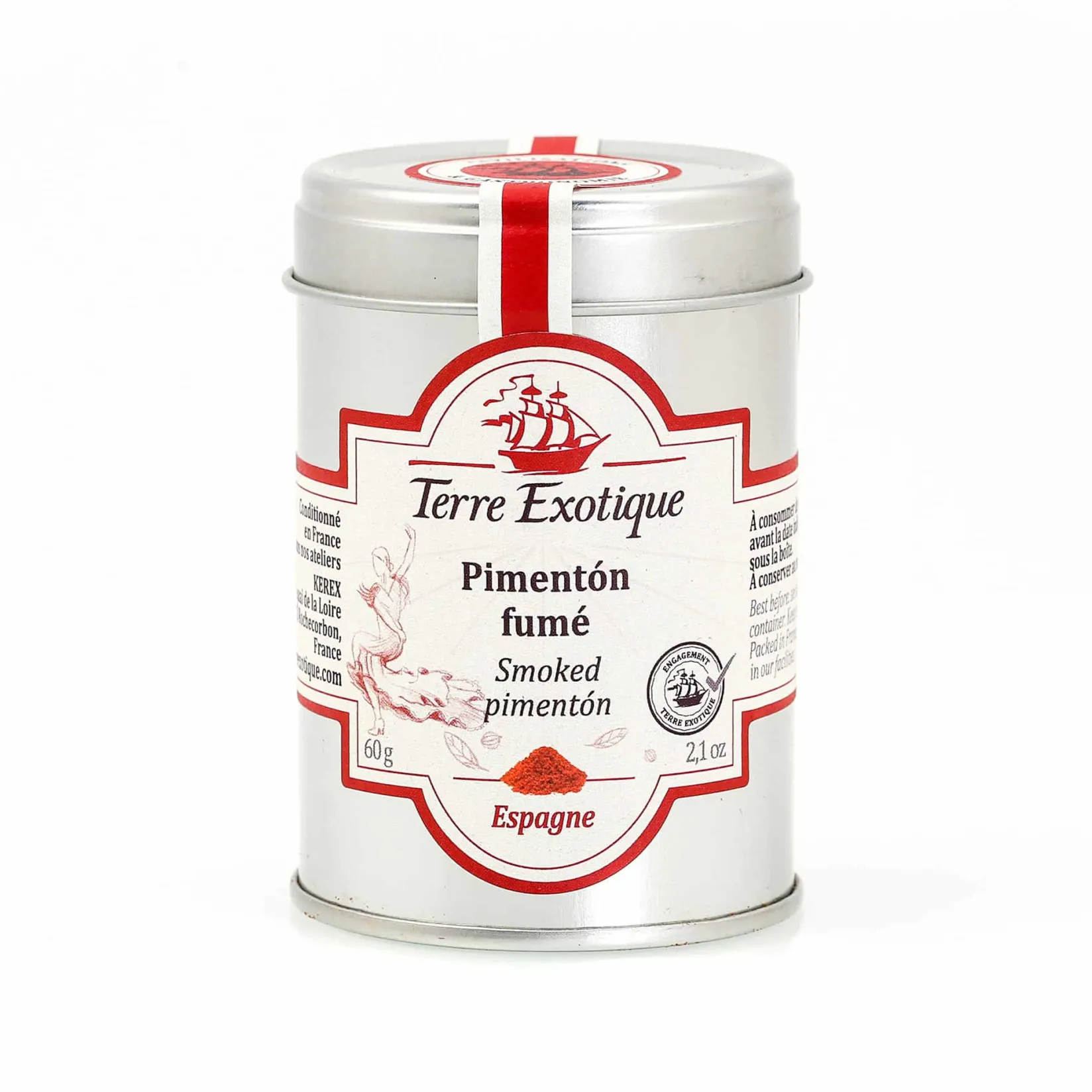 Terre Exotique’s smoked paprika, also called pimentón de la vera, comes from Spain and is a key flavour in classic Spanish dishes such as croquettes and paella. It’s also the key flavour in chorizo sausage. The dark red spice is oak smoked, for rich deep flavour.