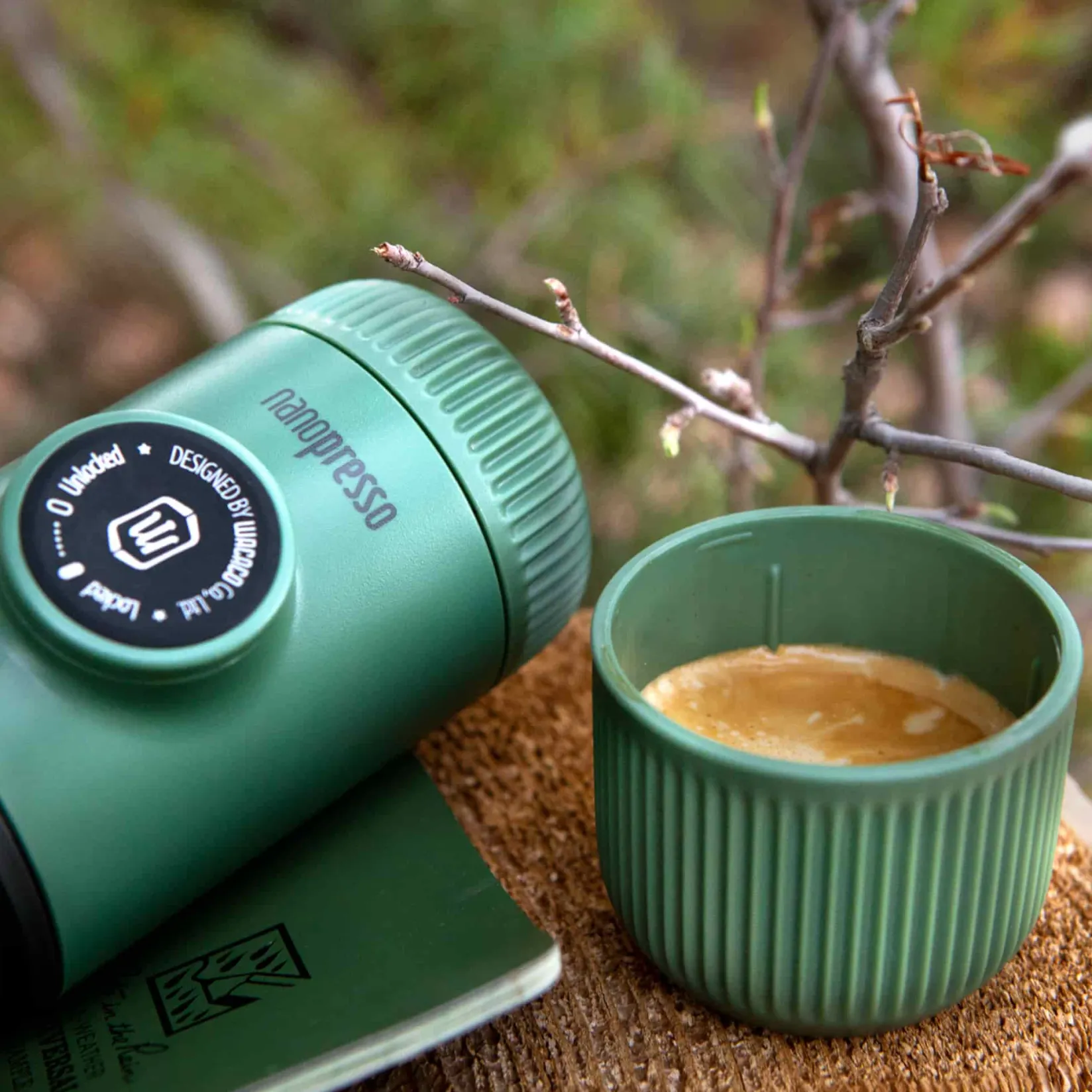 Enjoy a rich, creamy espresso with the Wacaco Nanopresso in moss green. This handheld espresso maker is built around a patented pumping system. With the help of your hands, it can reach 18 bars of pressure for unparalleled coffee extraction.
