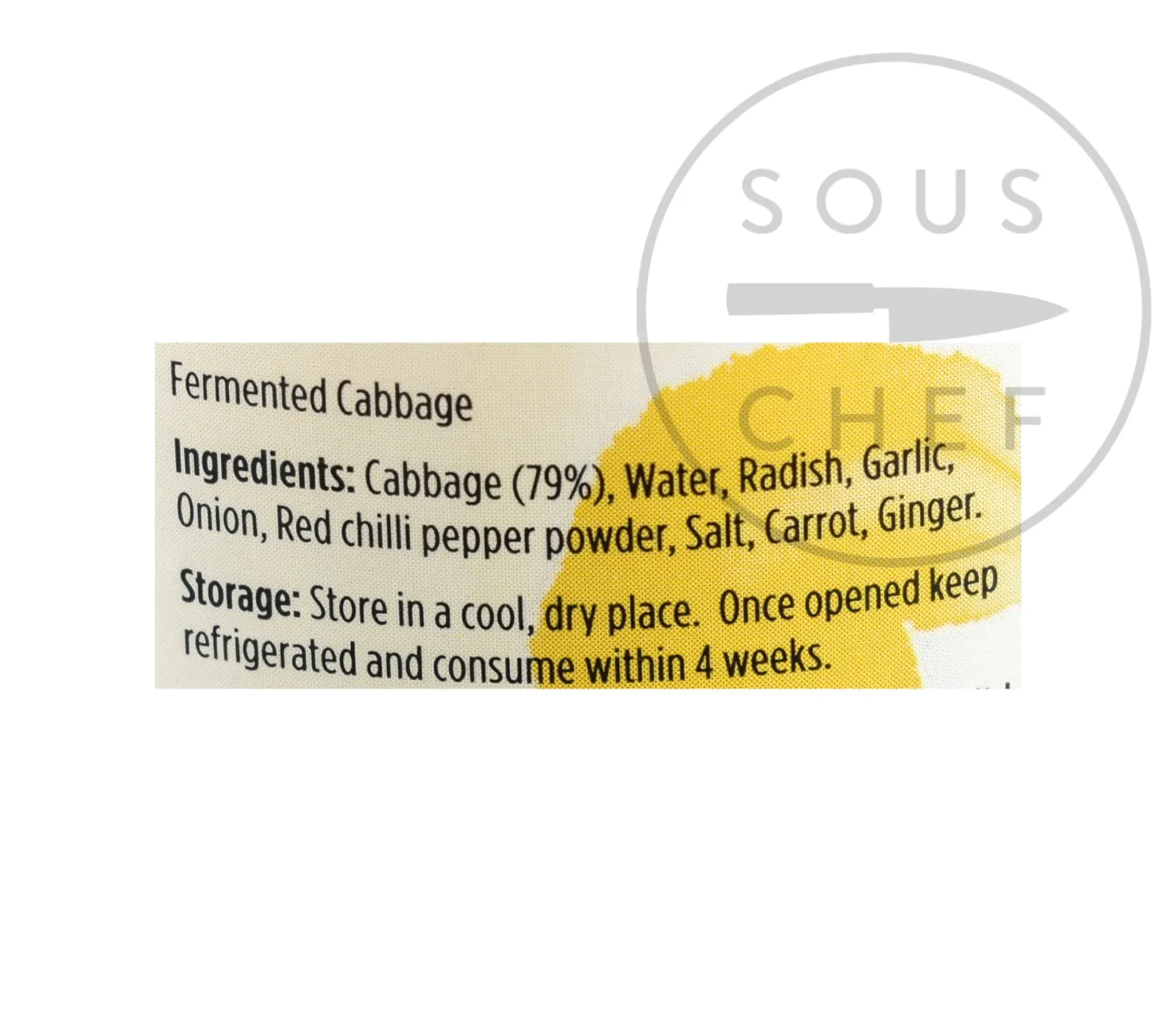Product formulations and details may change. For the latest ingredients and allergen information always check product packaging prior to consumption. Ingredients: Cabbage (79%), water, radish, garlic, onion, red chilli pepper powder, salt, carrot, ginger